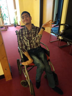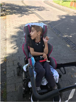 Muhannet ist seit seinem 3. Lebensjahr im Rollstuhl und hat Tetraspasmus,Was soviel bedeutet das er seine Arme und Beine, Hände und Füße nicht koordinieren kann. Sie sind ständig in Bewegung.